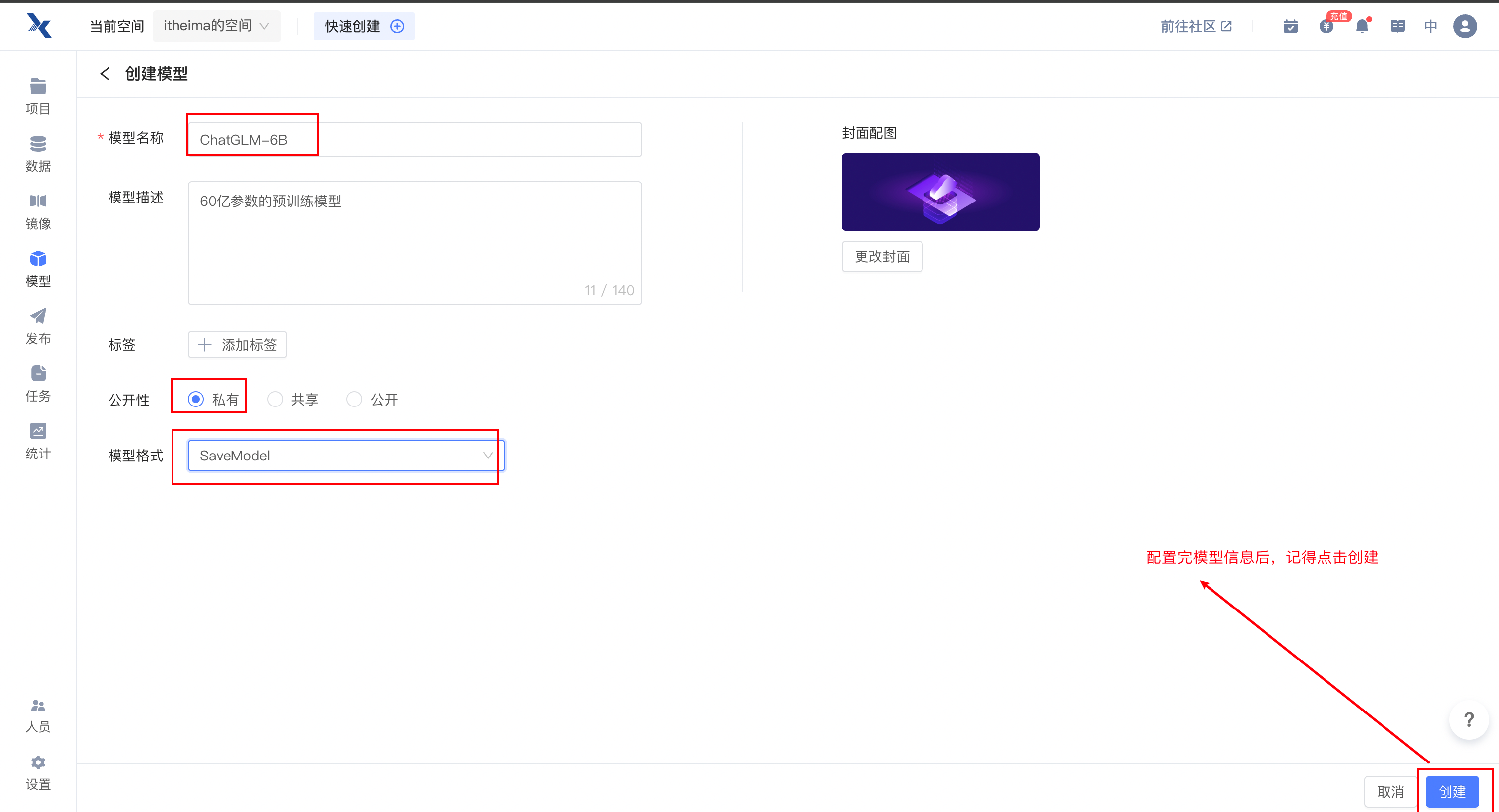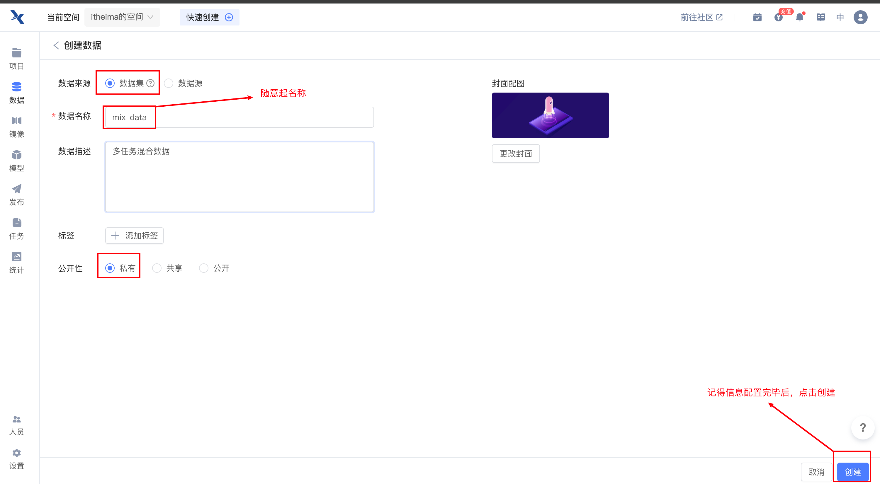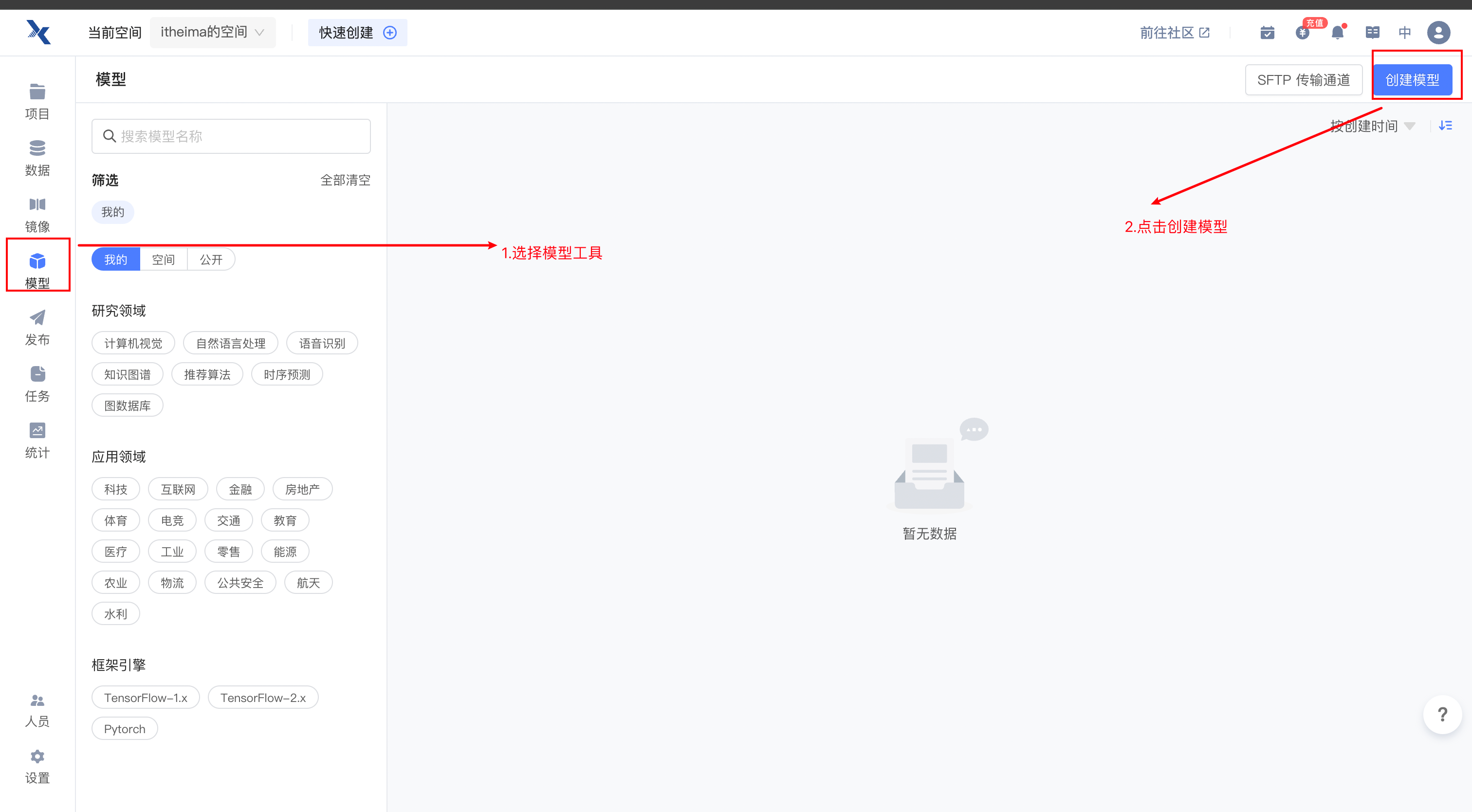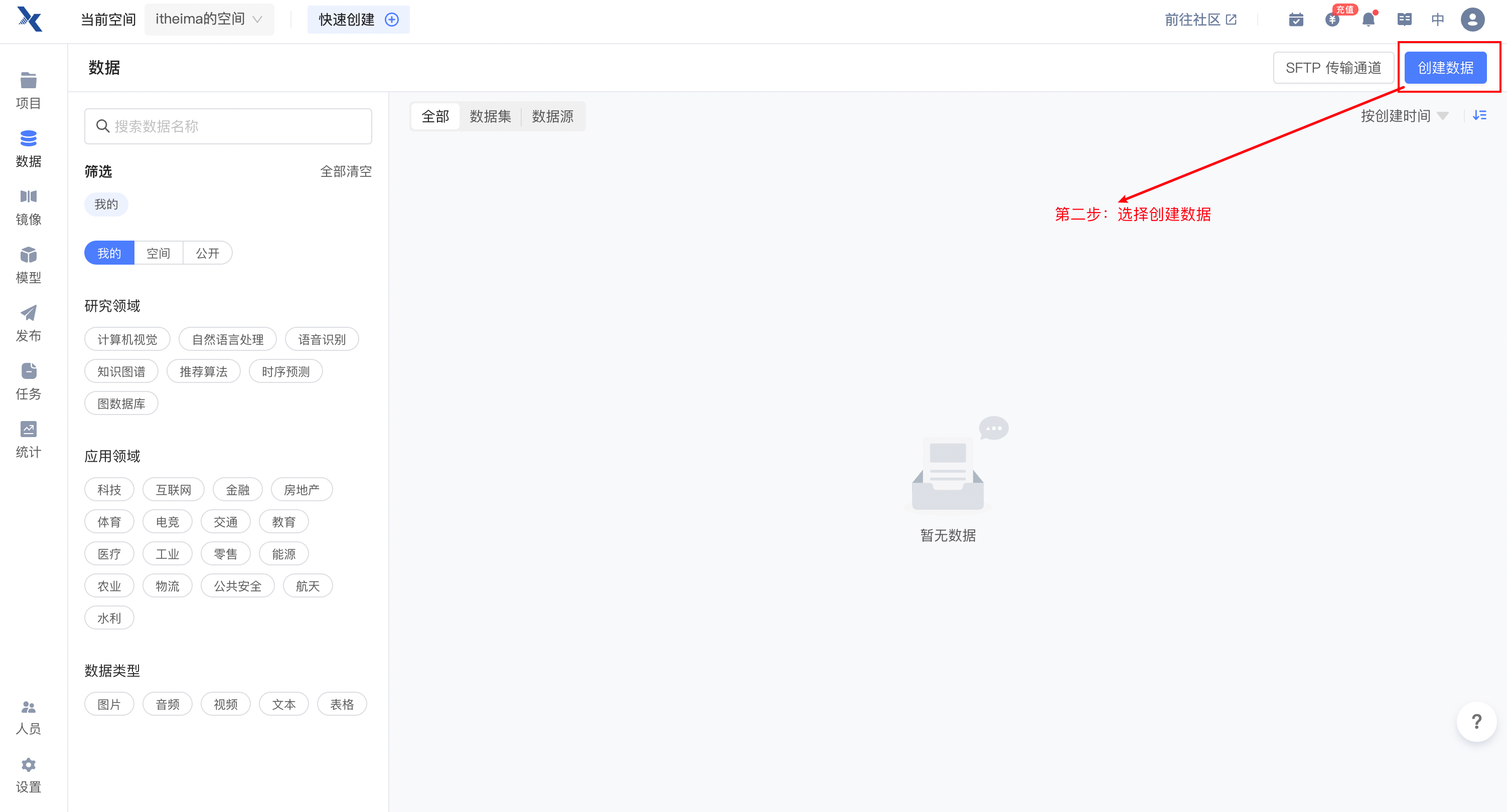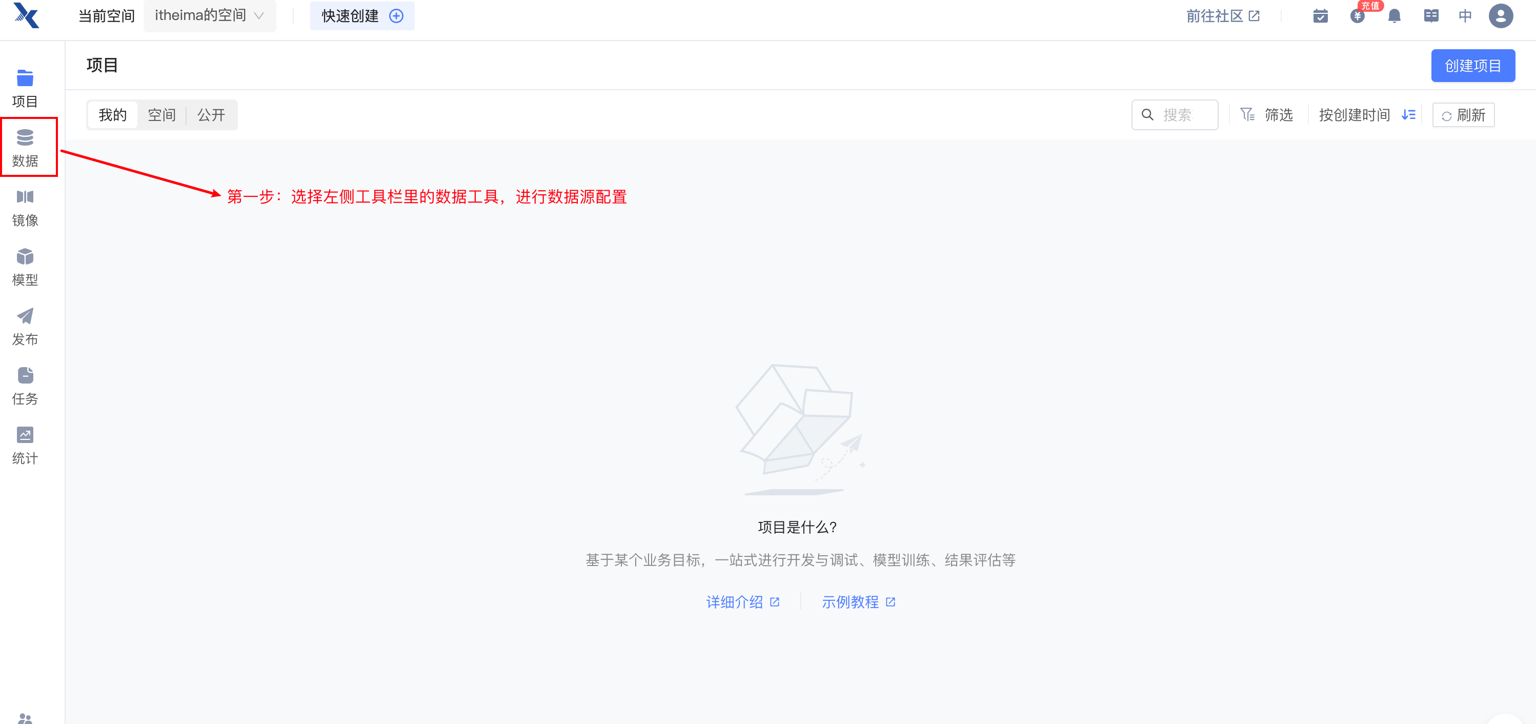 2.3.1 点击右上角创建项目¶
