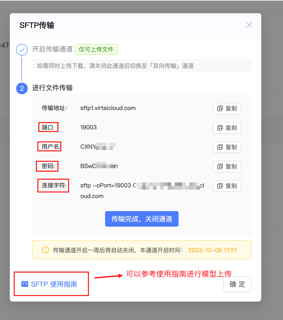 2.2.3 选择SFTP方式进行数据传输¶