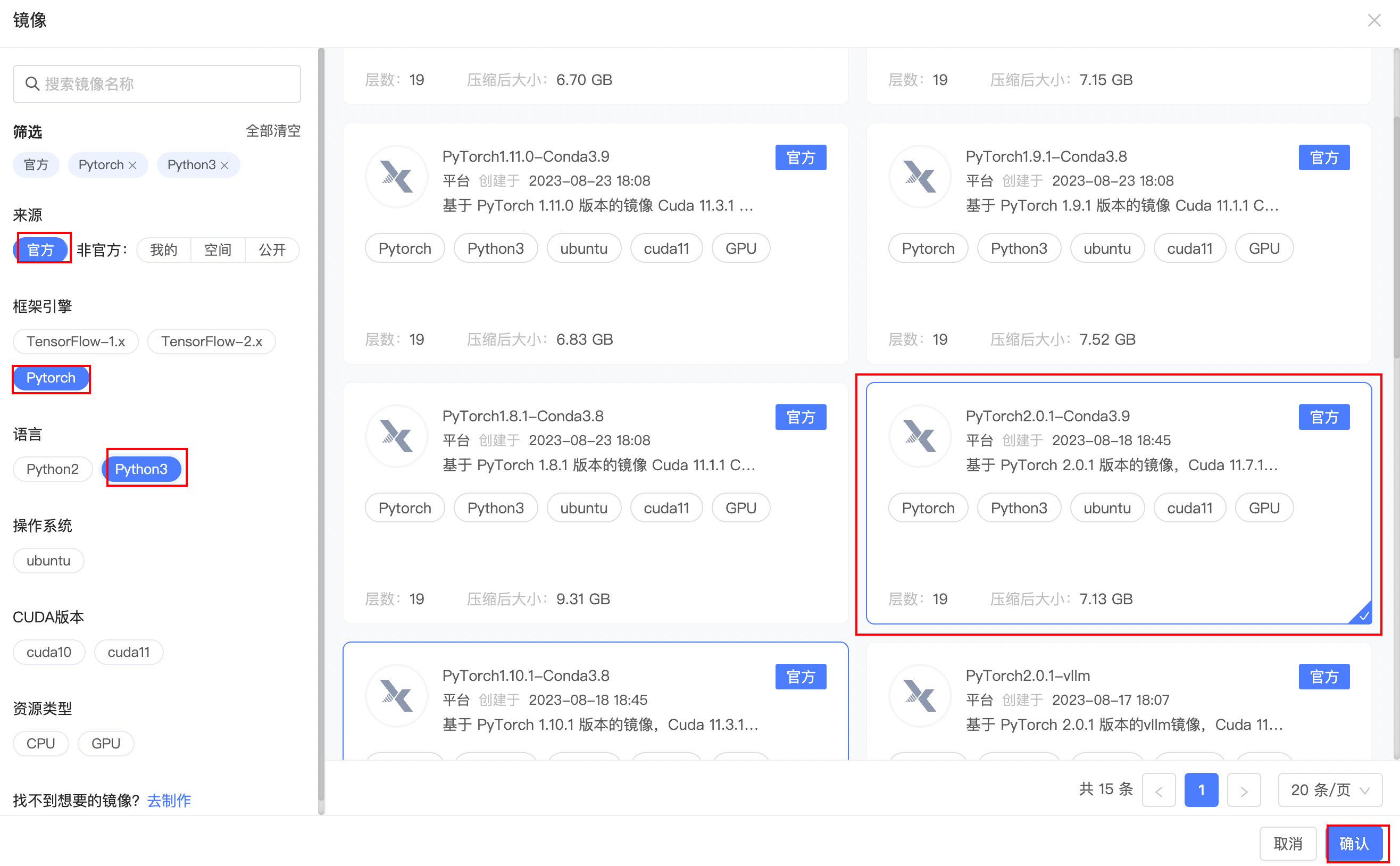 2.3.3 镜像环境选择¶