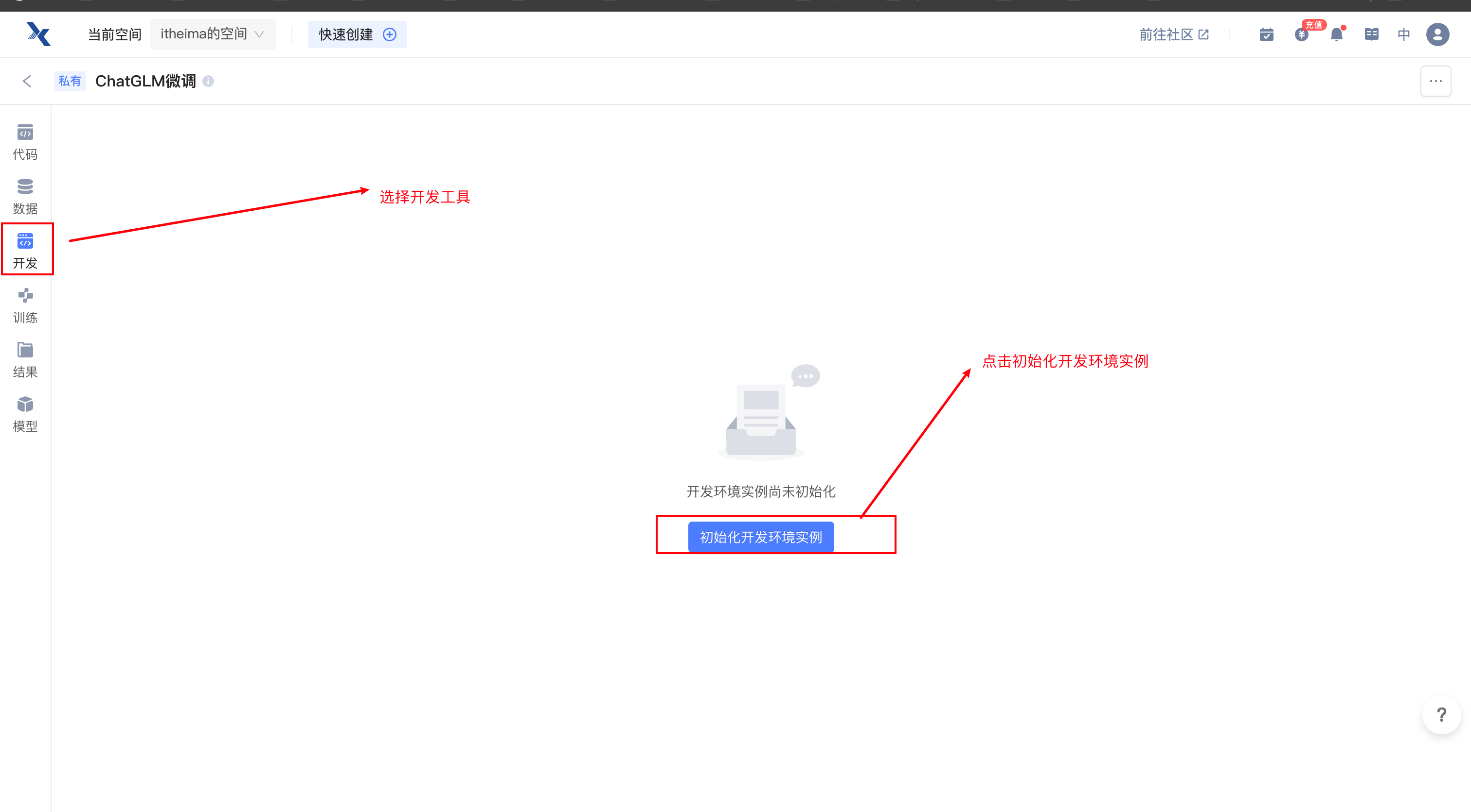 3.1.1 点击开发工具,进入开发环境实例配置界面¶