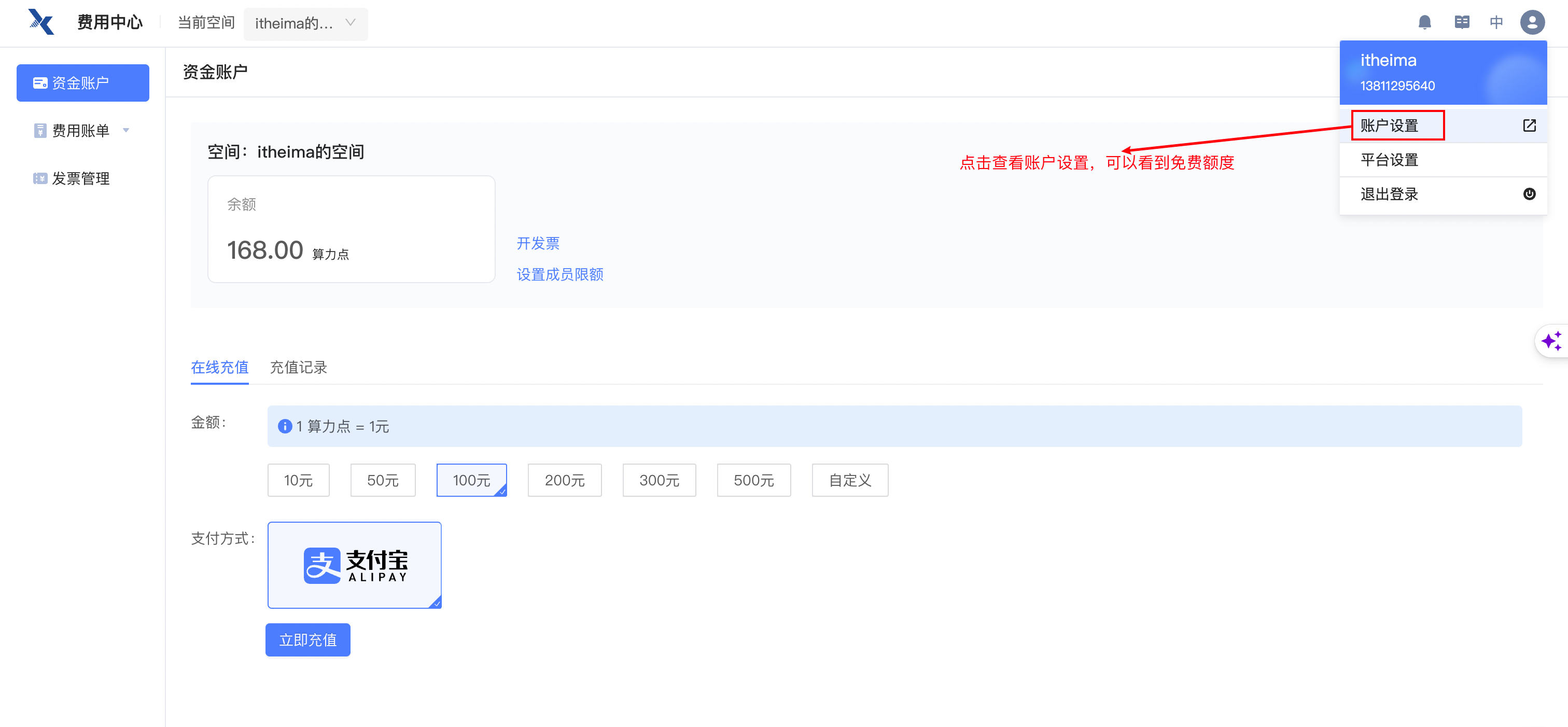 下拉右上角账户处,选择 平台设置。